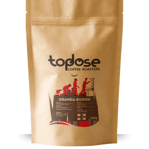 Experience the vibrant essence of Uganda Original Coffee from Top Dose Roasters, a single-origin gem roasted fresh in Johannesburg. This medium roast showcases beans from Mt Elgon and Bugisu, with notes of dark fruit, chocolate, and a smooth body.